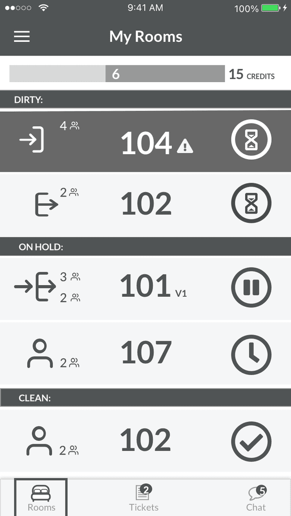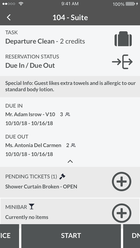 Hotels also depend on another platform, usually called PMS (Property Management System), where they store and manage all guest and reservation data, This data is extremely important to the Housekeeping team so they can plan their cleaning accordingly, like prioritizing VIP guests, cleaning rooms that have guests due for check in before stay-overs, etc. We carefully studied this language to properly integrate it into our experience.