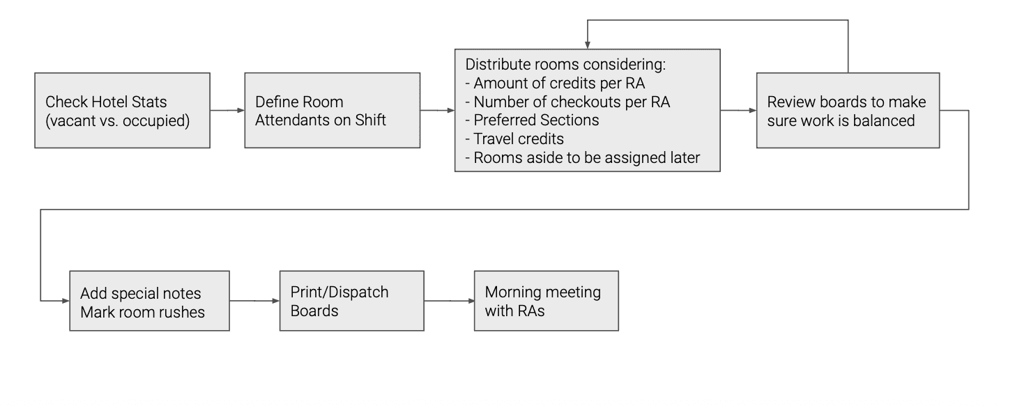 To kick off the process, we needed to gather insight into how the housekeeping world functioned. Our design team did several on-site research trips where they interviewed housekeeping staff, shadowed their workday, asked questions, and most importantly, documented everything. Here’s a summary of the research insights: